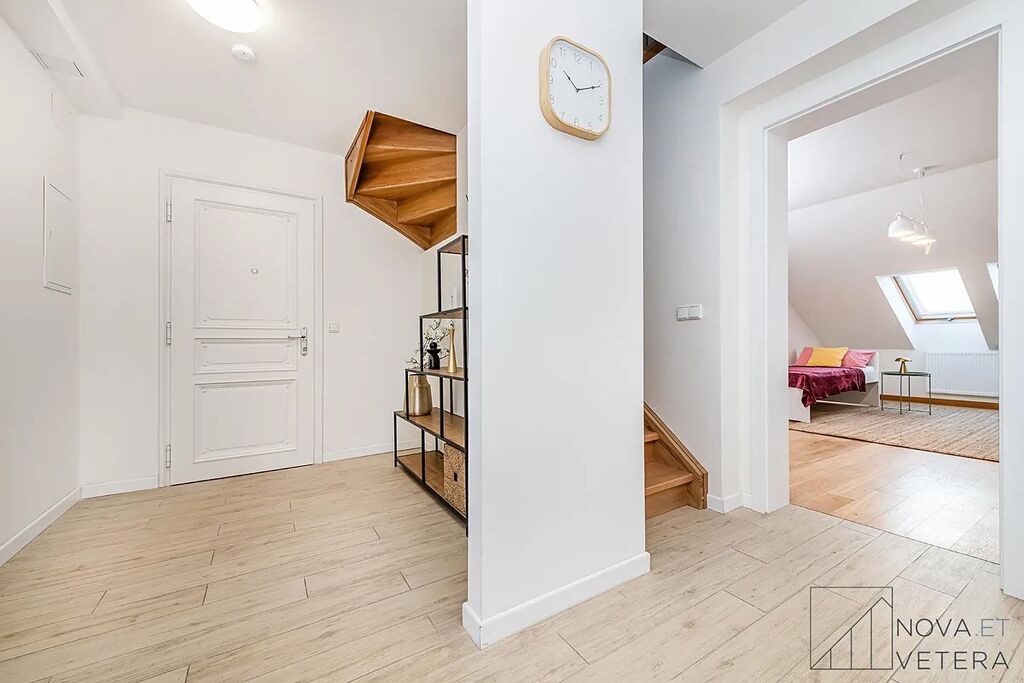 Na stejném podlaží se nachází ještě jeden podkrovní mezonet s dispozicí 5+kk ve stejném standardu. Fotografie u inzerce jsou ilustrační a pocházejí z této jednotky.