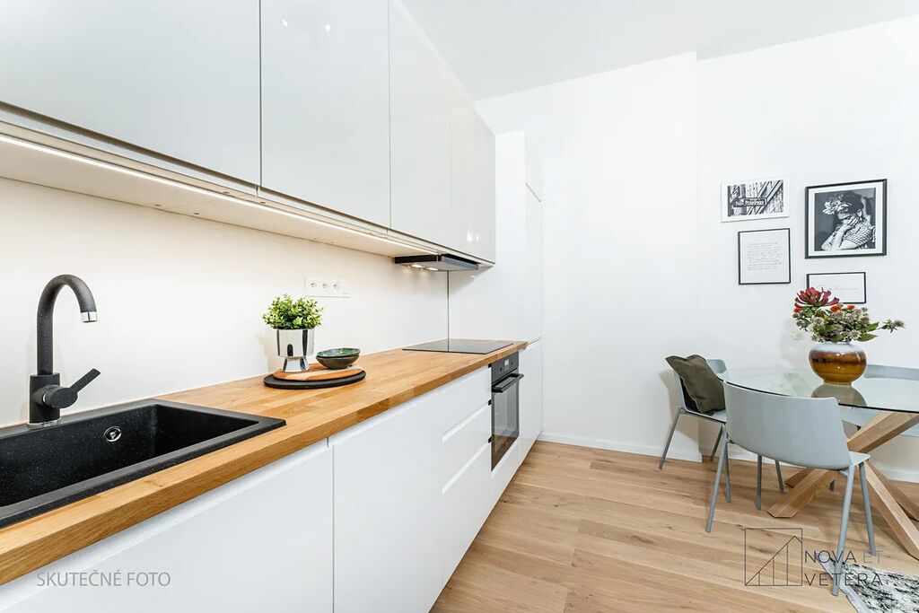 Byt právě prochází kompletní rekonstrukcí, která zahrnuje nové rozvody elektřiny, vody a odpadů, moderní podlahy, kvalitní obklady a dlažbu italské značky Marazzi, novou koupelnu a toaletu se sanitou Grohe a zcela novou kuchyňskou linku vybavenou vestavnými spotřebiči Gorenje s prodlouženou pětiletou zárukou. Nový majitel tak získá byt ve vysokém standardu, připravený k okamžitému nastěhování bez nutnosti dalších investic.