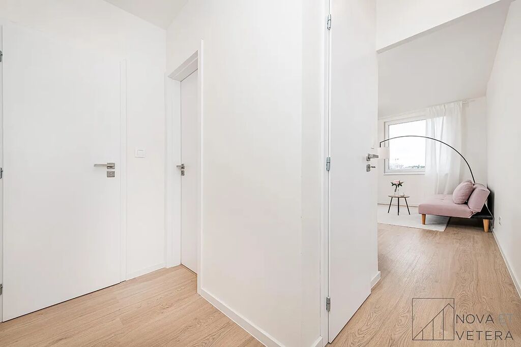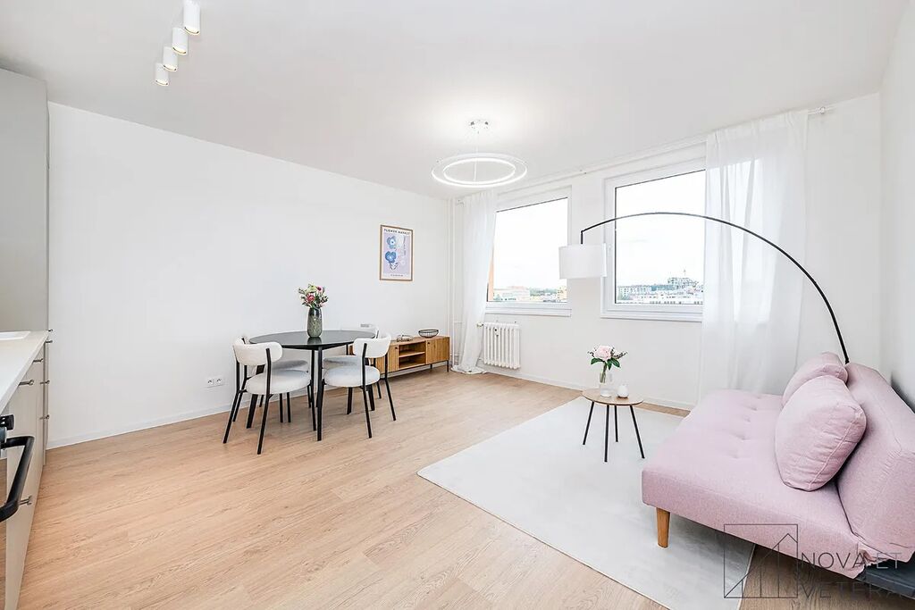 Byt prošel kompletní rekonstrukcí – nové rozvody, podlahy, obklady a koupelna se sprchovým koutem (sanita Grohe). Součástí je nová kuchyňská linka s vestavěnými spotřebiči značky Gorenje (lednice s mrazákem, trouba, varná deska, myčka, digestoř). Dispozici tvoří obývací pokoj s kuchyňským koutem, samostatná ložnice se vstupem na lodžii, prostorná šatna, koupelna a samostatná toaleta. K dispozici je také technická místnost s přípojkou na pračku.