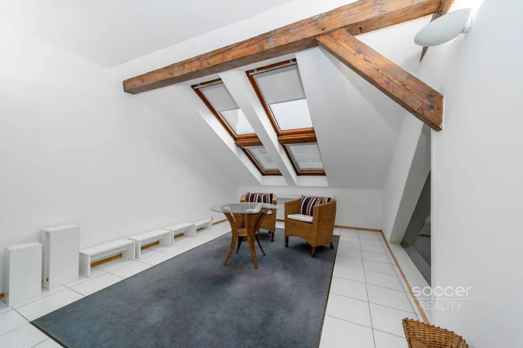 Prostorný a tichý byt se nachází v nejvyšším patře (podkroví) pečlivě udržovaného cihlového činžovního domu na rohu ulic Heřmanova a Dukelských hrdinů, jen 100 metrů od Strossmayerova náměstí a pouhých 400 metrů od stanice metra C – Vltavská. Zcela výjimečný je obývací pokoj s kuchyňským koutem, který má neuvěřitelných 79 m² a nabízí dokonalý prostor pro relax i společenský život.