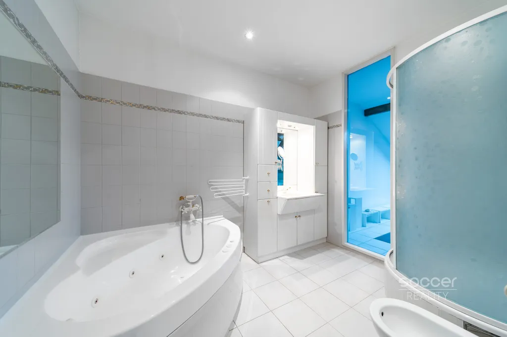 Koupelna je vybavena vanou, sprchou a bidetem. WC je oddělené. Dispozice bytu nabízí příjemnou orientaci místností, která podporuje komfortní každodenní fungování. Byt se dá snadno využít i na spolubydlení nebo jako kancelář či ateliér. V celém bytě je navíc instalována klimatizace.