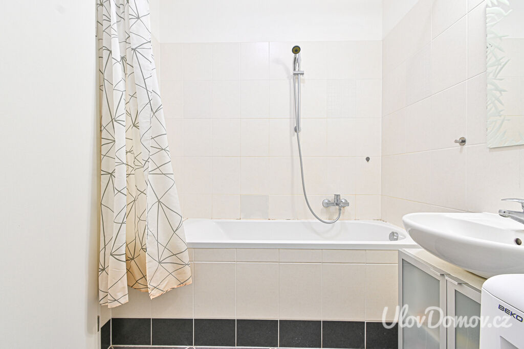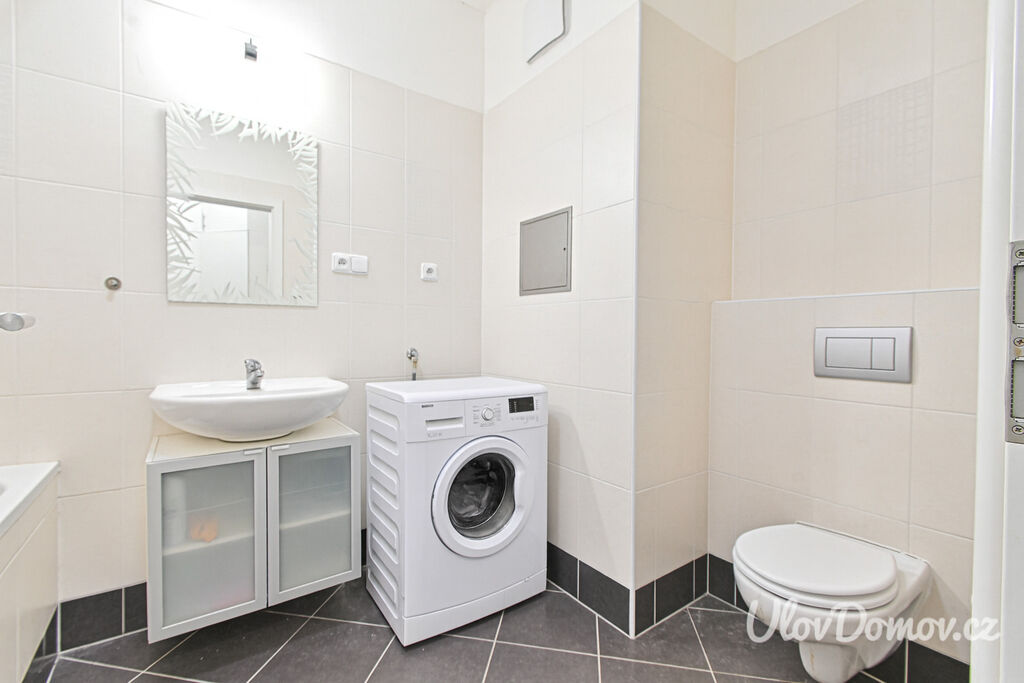 Byt se nabízí částečně vybavený. Disponuje kuchyňskou linkou se spotřebiči (elektrická trouba, varná deska, digestoř, mikrovlnná trouba). Součástí vybavení je také pračka, jídelní stůl, židle a postel.