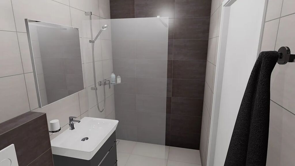 Koupelny jsou ve standartu od firmy PTÁČEK a vstupní bezpečnostní dveře od firmy SEPOS.