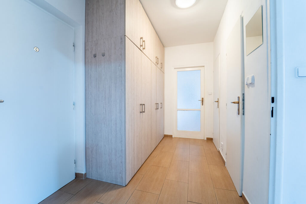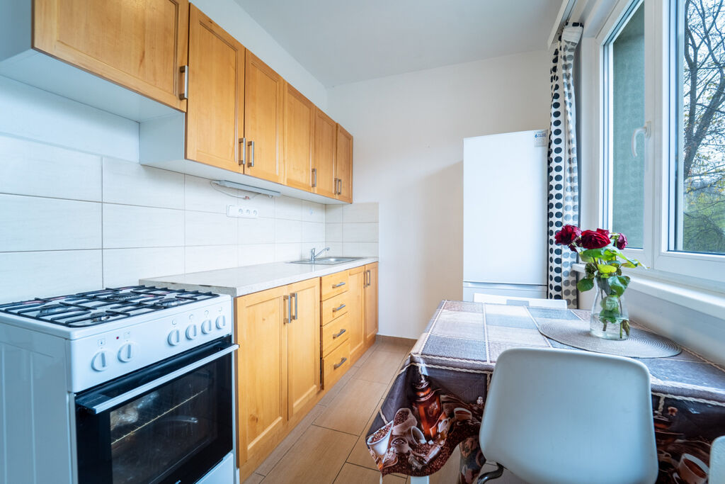 Dovolujeme si Vám nabídnout pronájem skvěle dispozičně řešeného bytu 2+1 se sklepem. Byt se nachází v 2.NP panelového domu po kompletní rekonstrukci. Samotný byt prošel rekonstrukcí před 6 lety, zděné jádro, koupelna s vanou, WC samostatně, podlahové krytiny tvoří parkety v ložnicích a ve zbytku bytu dlažba. Obě ložnice odděleny chodbou a kuchyní. Topení dálkové ústřední. Byt se nabízí částečně vybavený (vestavěná skříň v chodbě, pračka a skříňka v koupelně, kuchyňská linka, s elektrickou troubou a plynovým sporákem, lednice s mrazákem a stolek s dvěma židlemi). V 1.PP možnost využití zděného sklepu 3 m2. Dům se nachází přímo u Metra A - Petřiny, klidná lokalita se zelení i kompletní občanskou vybaveností. V docházkové vzdálenosti obchody, školy, školky i lékaři.