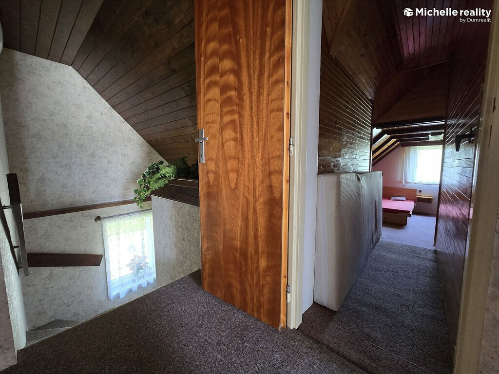 Michelle reality Vám exkluzivně nabízí k prodeji samostatně stojící rodinný dům situovaný v klidné lokalitě Hlásná Třebáň s jediným sousedem a naprostým soukromím. Dům se nachází na prostorném, pečlivě udržovaném pozemku o celkové výměře 1 014 m², kterým protéká vlastní potok. Zahrada je ideálním místem pro relaxaci, s posezením pod stromy a bazénem (v současnosti nefunkční, určený k servisu). Součástí pozemku je také zabudovaná nádoba na dešťovou vodu o objemu cca 10 m³, vhodná k zalévání zahrady. Dům má podlahovou plochu cca 230 m² a je dispozičně řešen jako jednogenerační: Dispozice domu: Přízemí: bytová jednotka 3+1, 1. Patro: bytová jednotka 2+1 s balkonem a nádherným výhledem do krajiny, 1. podzemní podlaží: sklep, technická místnost, garáž pro 1 auto, dílna. Dům je napojen na městskou kanalizaci a městský vodovod, zároveň má i vlastní studnu. Vytápění zajišťuje elektrický kotel, zároveň je k dispozici i funkční kotel na tuhá paliva. Tato nemovitost nabízí perfektní kombinaci klidného venkovského života a dostupnosti občanské vybavenosti. Ideální pro rodinné nebo dvougenerační bydlení (po stavební úpravě), případně pro rekreační využití. Nádherné místo pro plnohodnotný život. Vřele doporučuji prohlídku. Ev. číslo: 650991.