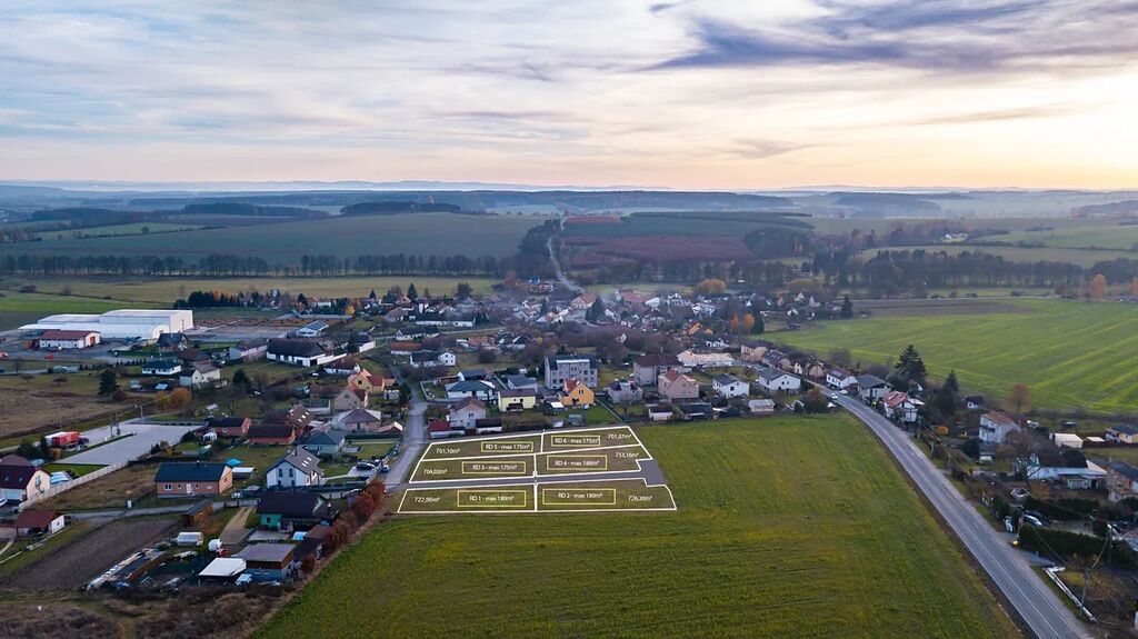 5 bunglalovů velikosti 4 kk užitné plochy 98.3 m2 pozemky o velikosti 726 m2 - 762 m2