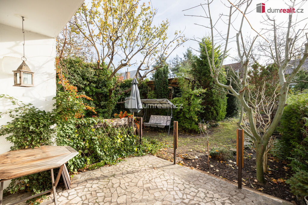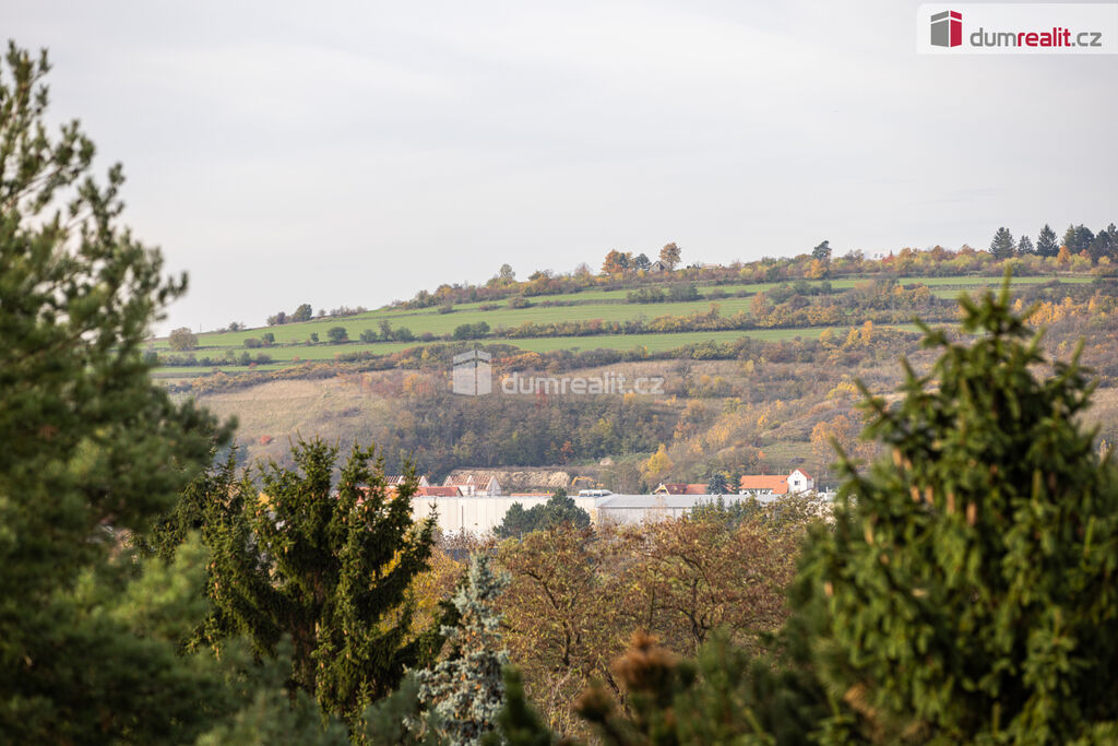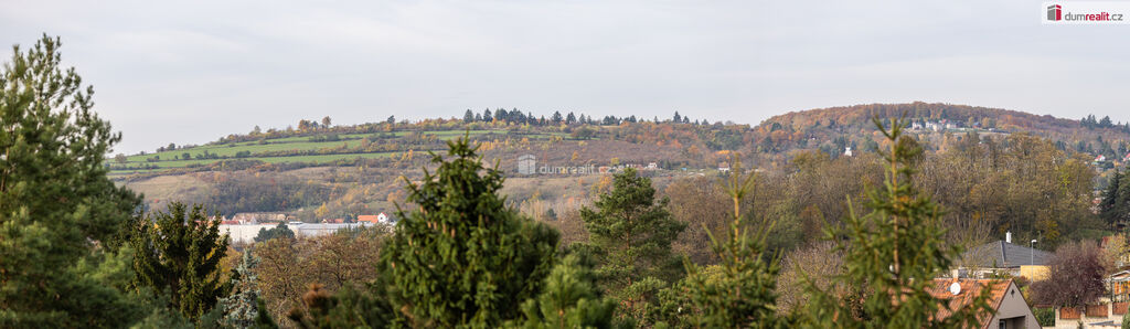Ze zahrady se dá vyjít do ulice Na Vršku. A z vršku zahrady se dá rozhlédnout po přilehlých kopcích a střechách sousedních domů.