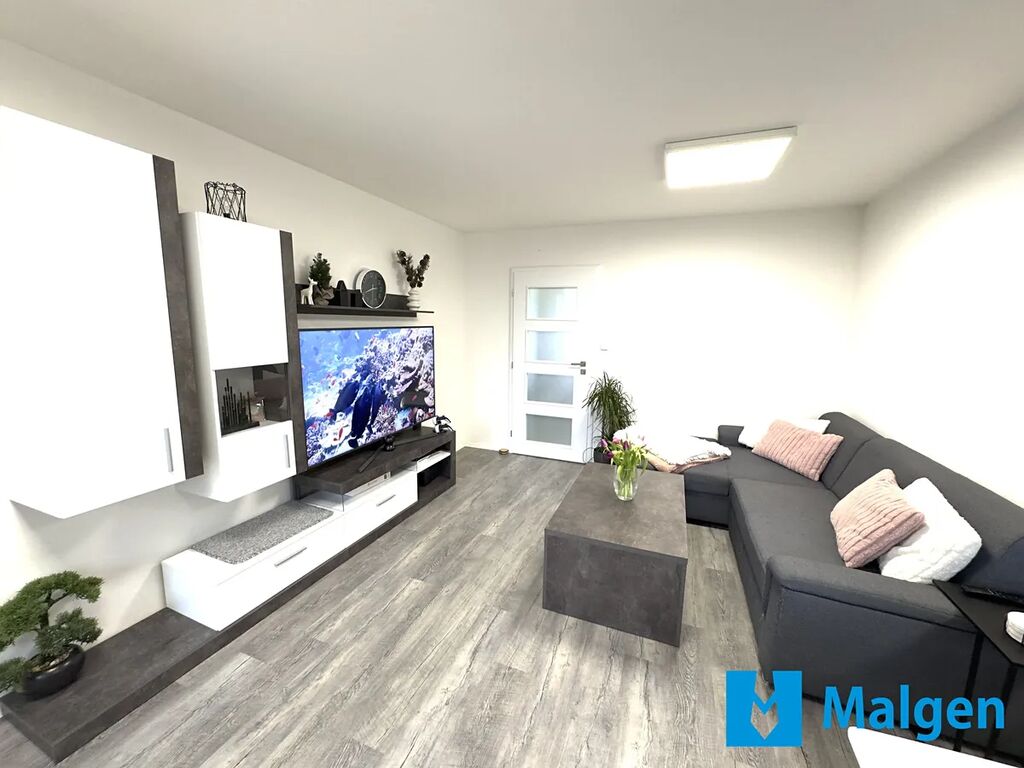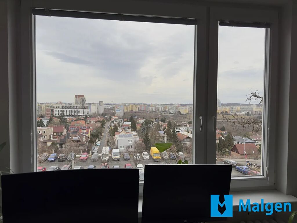 Dispozice bytu zahrnuje prostorný obývací pokoj propojený s moderním kuchyňským koutem včetně spotřebičů, ložnici, další pokoj (aktuálně využívaný jako pracovna), koupelnu s vanou a samostatnou toaletu. Součástí je také zasklená lodžie (7 m²) s klidným výhledem do vnitrobloku se zelení a dětským hřištěm. V bytě je dostatek úložných prostor, včetně vestavěných skříní, a komfort zvyšuje i elektrické podlahové vytápění v koupelně a na toaletě. Dle dohody je možné ponechat i zánovní vybavení a nábytek.