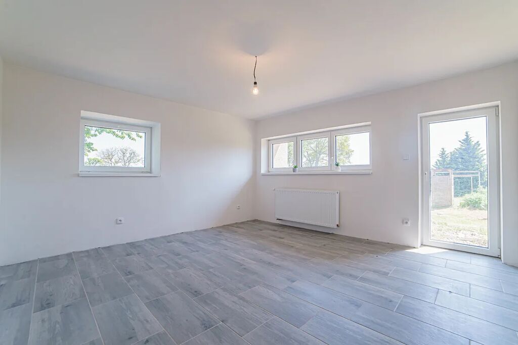 • V celém domě nové rozvody vody v plastu, nové rozvody plynu, plastová okna, nové rozvody elektřiny, štukové omítky, podhledy SDK, dlažba na podlaze.