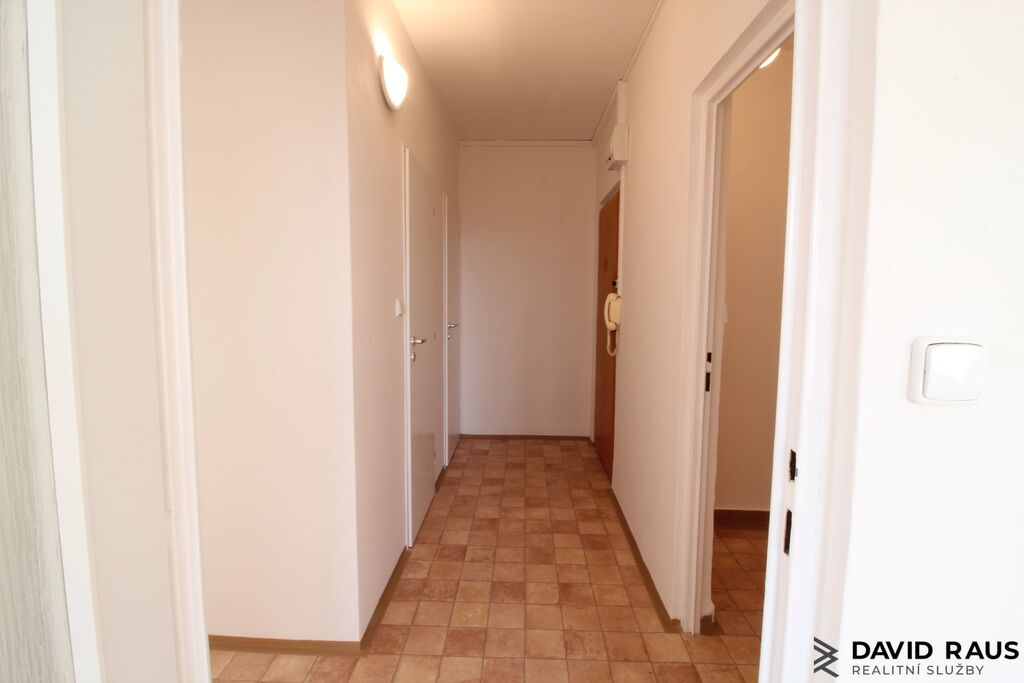 Hlavním vstupem vcházíme do předsíně, dostatek úložného prostoru nacházíme po levé straně, v samostatné, prostorné šatně . Z předsíně následně vstupujeme do obývacího pokoje s kuchyňským koutem a dále dveřmi do druhé obytné místnosti - ložnice. Oba dva pokoje mají vstup na balkon. V neposlední řadě, než opustíme nabízenou bytovou jednotku vcházíme na samostatné WC a do koupelny se sprchovým koutem. V bytě jsou plastová okna, podlahy dřevěné, PVC a dlažba.