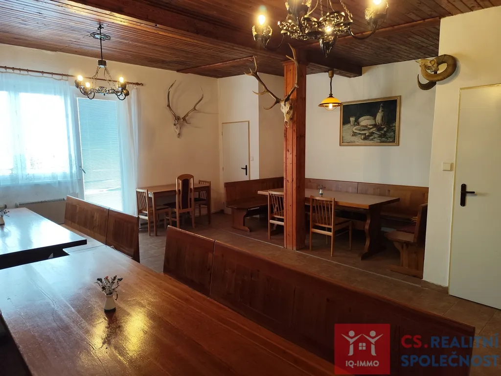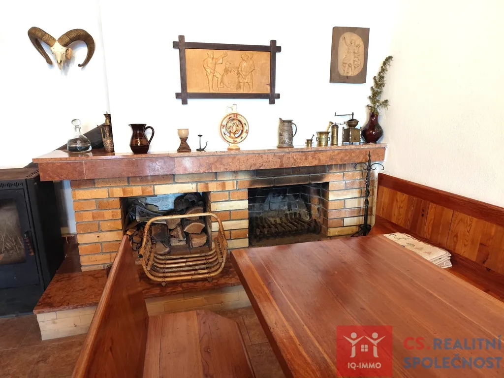 V patře nalezneme prostor se stoly a lavicemi pro cca 22 osob. Dále vybavenou kuchyňku a toaletu. Vytápění je možné krbovými kamny nebo přímotopy.