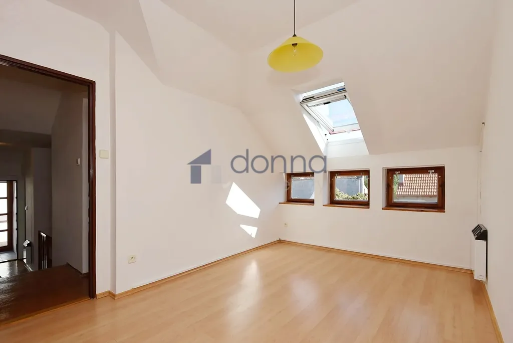 Dům se nachází na konci uzavřené ulice, což zaručuje klid, bezpečí a soukromí. Součástí je garáž 27m², sklep 16m² a terasa v 1. patře o rozloze 32m². Zahrada není součástí nájmu.