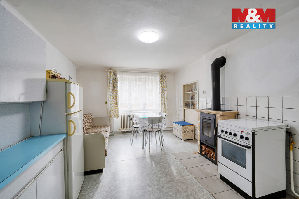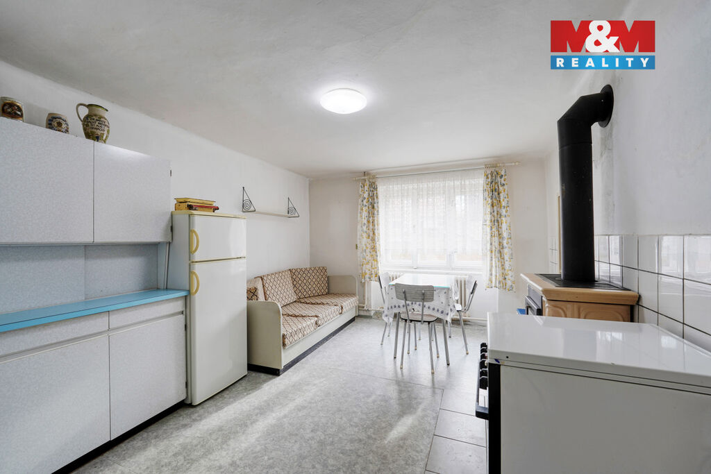 Nabízíme k prodeji prostorný dvougenerační rodinný dům ve městě Kryry, ideální pro ty, kdo hledají klidné bydlení s dostatkem prostoru. Nemovitost o celkové užitné ploše 182 m² nabízí dvě samostatné bytové jednotky, přízemí 2+1, 1. patro 3+1 a je ideální pro vícegenerační bydlení či jako investiční příležitost. Dům stojí na pozemku o výměře 750 m², na kterém se nachází také stodola s garáží a dílnou – ideální pro úložné prostory, parkování či podnikatelské využití. Pozemek dále poskytuje dostatek prostoru pro zahradu, relaxaci nebo rodinné aktivity. Dům je v dobrém a udržovaném stavu, je napojen na veřejný vodovod + kopaná studna, na veřejnou kanalizaci, o vytápění se stará plynový kotel s krbovými kamny a ohřev vody řešen bojlerem. Město Kryry nabízí veškerou občanskou vybavenost (škola, obchod, služby). Výborná dopravní dostupnost – dálnice D6 (Praha – Karlovy Vary) je vzdálena pouhé 4,5 km. Pro více informací neváhejte kontaktovat makléře a domluvit si prohlídku této nemovitosti.