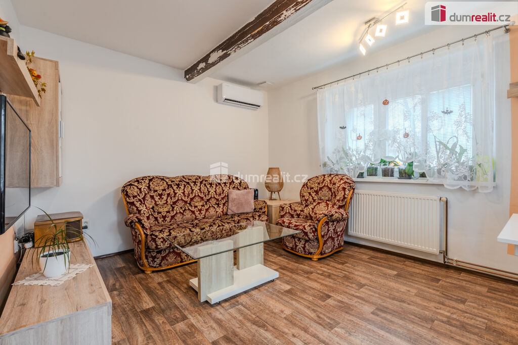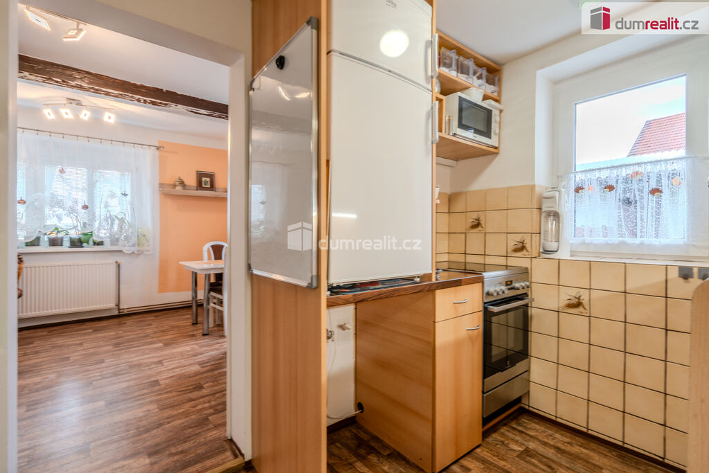 RD má zhruba 46 m² o dispozici 2+kk - ložnice, obývací pokoj, kuchyňský kout, předsíň, toaleta a zvlášť koupelna se sprchovým koutem.