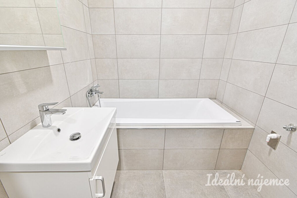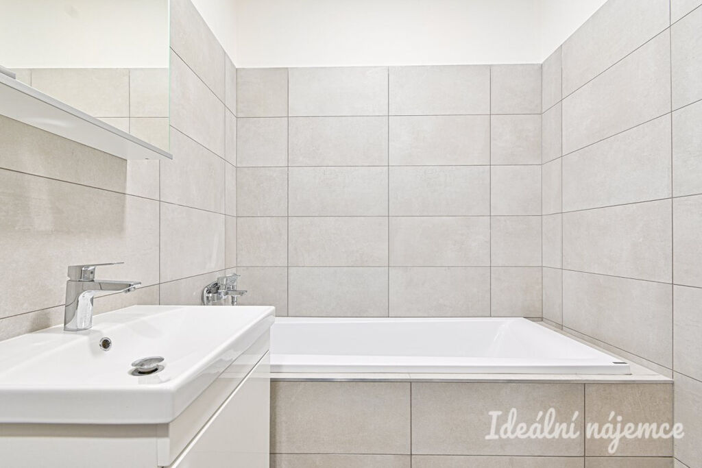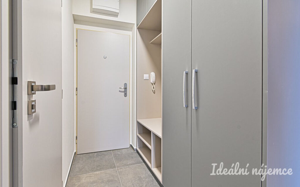 V koupelně je vana, umyvadlo a toaleta. V předsíni se nachází vestavěné úložné prostory.
