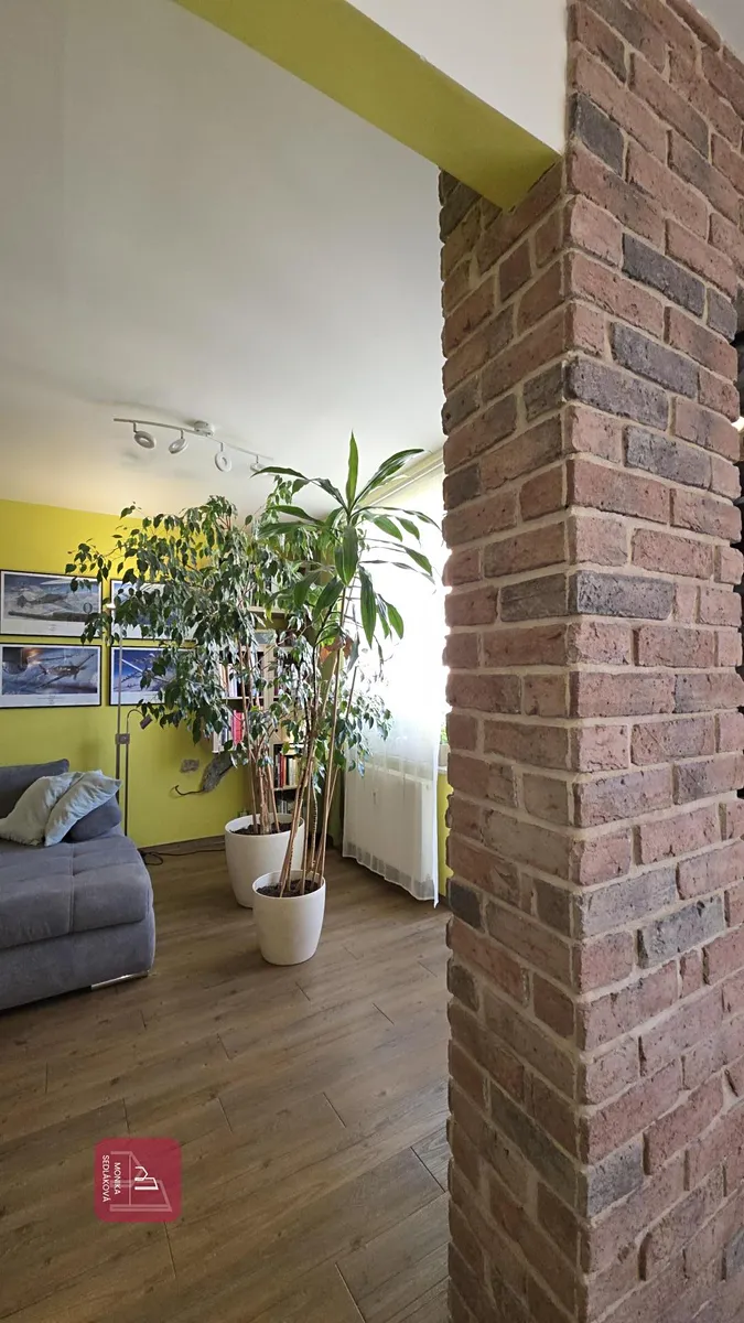 Výměry pokojů: kuchyň 10 m2 průchozí do obývacího pokoje 21 m2, dětský pokoj 14 m2, ložnice 12 m2, předsíň 6 m2, koupelna se sprchovým koutem a umyvadlem 3,5 m2, samostatná toaleta s umývátkem a pračkou 2,5m2, komora 1 m2 a sklep 2 m2. Byt je orientovaný na východ a jih.