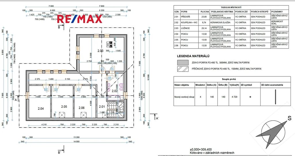Zastavěná plocha rodinného domu je 141,36 m2. Velikost domu je cca 13,7/14 m. Výška objektu 7,65 m.
