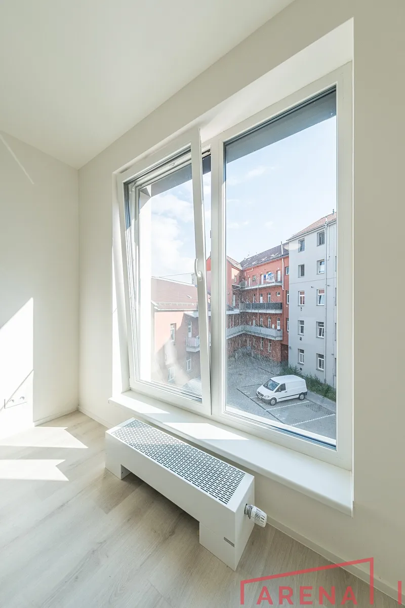 Útulný a světlý byt v novostavbě, ukrytý v tichém vnitrobloku jen pár minut od centra Brna.