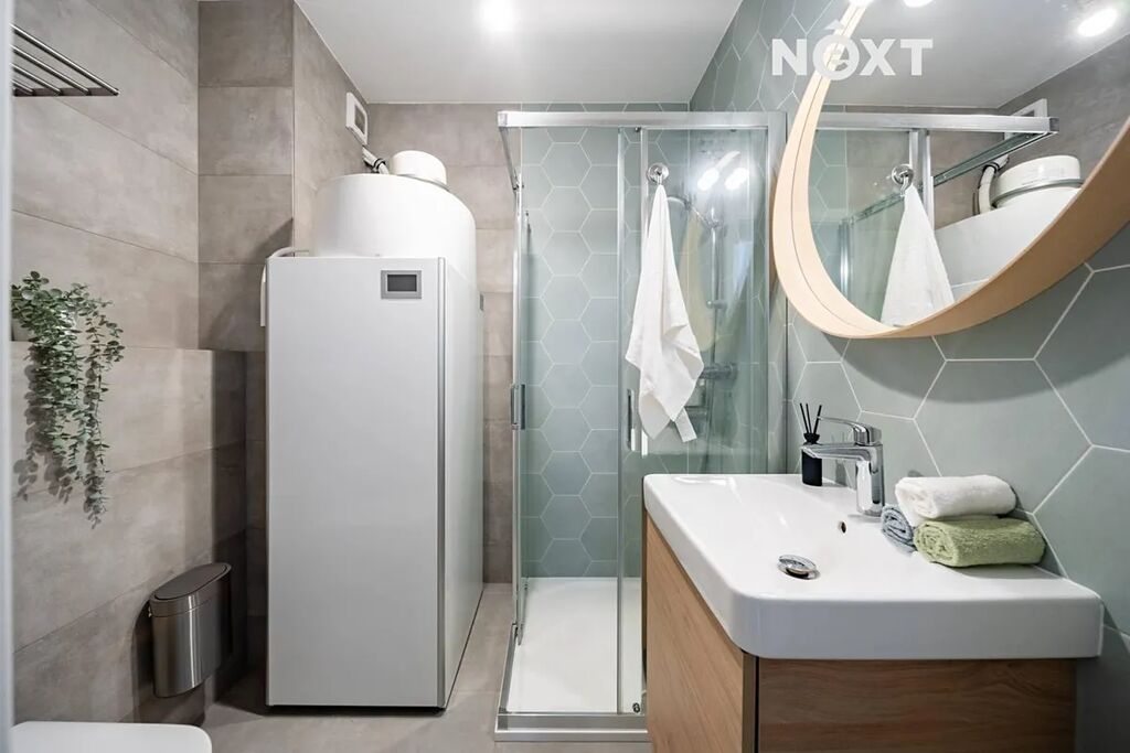 Elegantní prosklené schodiště vede do prvního patra, kde se nachází soukromá část domu. Hlavní ložnice o 16,09 m² působí vzdušně a nabízí klid s příjemným výhledem. Druhý pokoj o 13,95 m² je ideální jako dětský pokoj nebo pracovna. Třetí pokoj o velikosti 12,6 m² může sloužit jako druhý dětský pokoj, hobby místnost nebo pracovna pro dva. Nechybí ani čtvrtá místnost o 9,89 m², vhodná jako šatna, menší pracovna nebo pokoj pro hosty. Koupelna v patře má 7,59 m², je vybavena vanou i sprchovým koutem a díky oknu působí příjemně, svěže a umožňuje přirozené větrání.