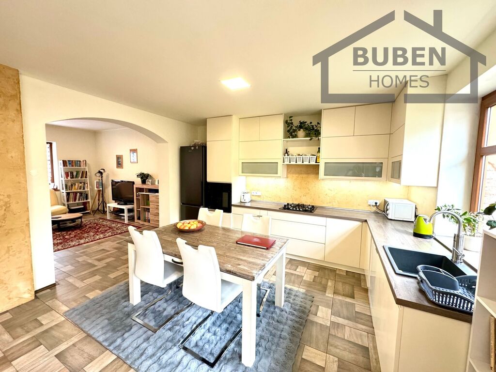 Předmětem prodeje je patrový, částečně podsklepený RD s kolnami a zahradou s fóliovníkem. 1.NP tvoří zádveří, chodba se schodištěm do patra a vstupem na zahradu, kuchyň s jídelnou a obývacím pokojem, ložnice, samostatné WC (v rekonstrukci) a spíž. Po schodišti vstoupíme do patra, kde jsou vybudovány 4 ložnice (jedna využívaná jako šatna), prostorná koupelna s WC (sprchový kout, vana), sklad (s boilerem). V mezipatře je vybudována přístavba sloužící jako prádelna. Podkroví je prostorné (cca 90 m2), zde je možné vybudovat další bytovou jednotku.