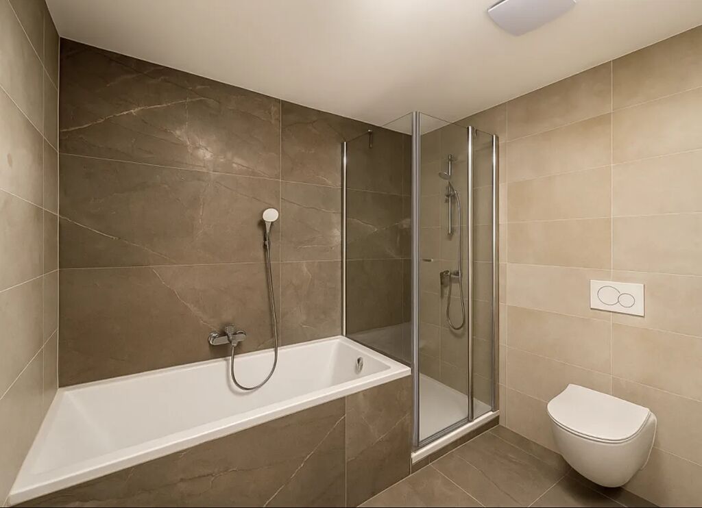 Byt se nachází v 6. nadzemním podlaží moderního rezidenčního domu a nabízí promyšlenou dispozici, která spojuje funkčnost, styl a pohodlí. Dispozice zahrnuje vstupní předsíň s vestavěnými skříněmi, toaletu pro hosty, prostorný obývací pokoj s přímým vstupem na balkon, kuchyňský kout s jídelní částí, hlavní ložnici, druhou ložnici a koupelnu vybavenou vanou, sprchovým koutem, umyvadlem a toaletou.