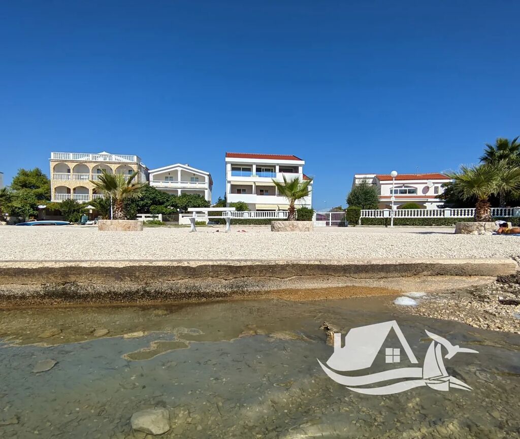 Na ostrově Vir čeká příjemný apartmán v přízemí domu se čtyřmi jednotkami, přímo u upravené oblázkové pláže a s ničím nerušeným výhledem na moře. Je to místo, kde se ráno probouzíte při zvuku vln a večer sedíte na prostorné terase o 24 m², odkud vidíte hladinu měnit barvy. Celková čistá užitná plocha 90,9 m² je rozvržena tak, aby poskytla pohodlí jak při letní dovolené, tak při celoročním bydlení.