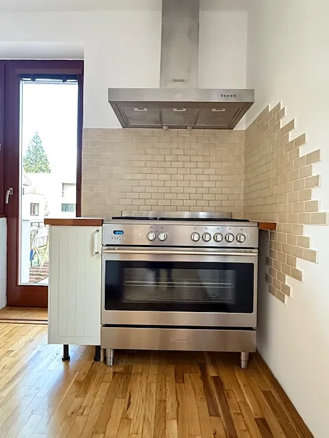 TOMPAT Reality Vám nabízí k pronájmu světlý a velmi prostorný mezonetový byt 3+kk o užitné ploše 115 m², který se nachází v rodinném domě v klidné lokalitě Praha - Velká Chuchle, ulice Dolomitová. Byt disponuje terasou ve 2. NP o velikosti 25 m² s příjemným výhledem. V každém patře se nachází samostatná koupelna a toaleta. K vybavení bytu patří kuchyňská linka s myčkou nádobí, velkým plynovým sporákem (90 cm), lednicí, v koupelně je k dispozici pračka. Měsíční nájemné činí 29 000 Kč + 7 000 Kč poplatky. Bytová jednotka se pronajímá bez možnosti využívání zahrady. Parkování je možné před domem, bez zón. Poloha bytu nabízí klidné bydlení s dobrou dostupností do centra města. Majitel požaduje vratnou kauci ve výši jednoho měsíčního nájmu. Stejná částka je i provizí realitní kanceláře. Bytová jednotka je ihned k nastěhování.