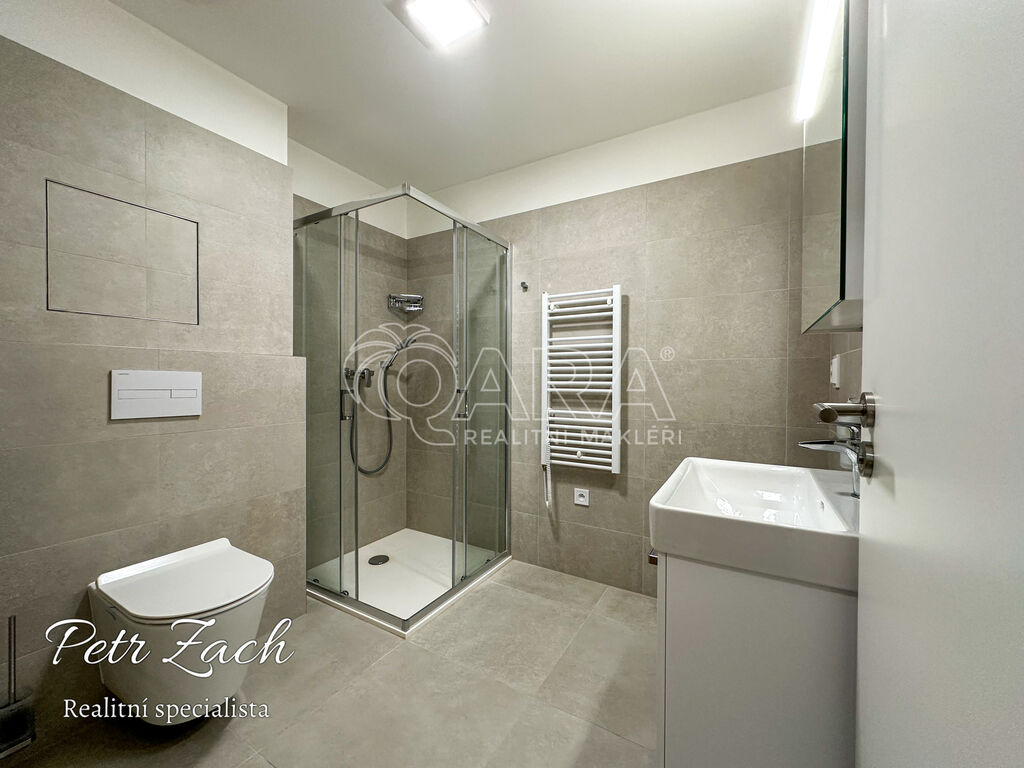 Vnitřní prostor bytu je světlý a vzdušný, s pečlivě zvolenými detaily, které podtrhují jeho luxusní charakter. Byt je částečně vybaven, zahrnuje novou kuchyň s moderními spotřebiči, které splní očekávání i těch nejnáročnějších kuchařů. V kuchyni na vás čeká připravený jídelní stůl se židlemi, ideální místo pro ranní kávu i večerní posezení. Klimatizace v bytě zabezpečuje příjemnou atmosféru po celý rok. Samozřejmostí je moderní sprchový kout, díky kterému si můžete dopřát osvěžení po náročném dni.