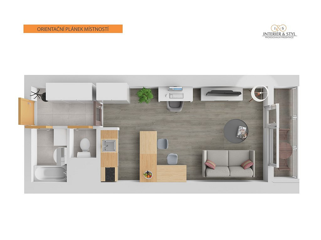 Komfortně zařízené 1+kk s balkonem (30 m²), Praha 9 Letňany