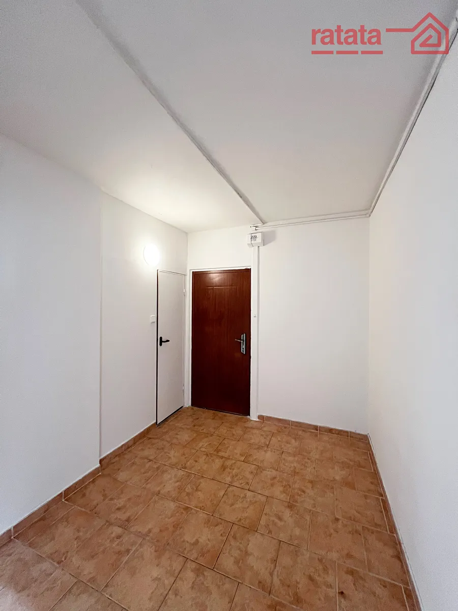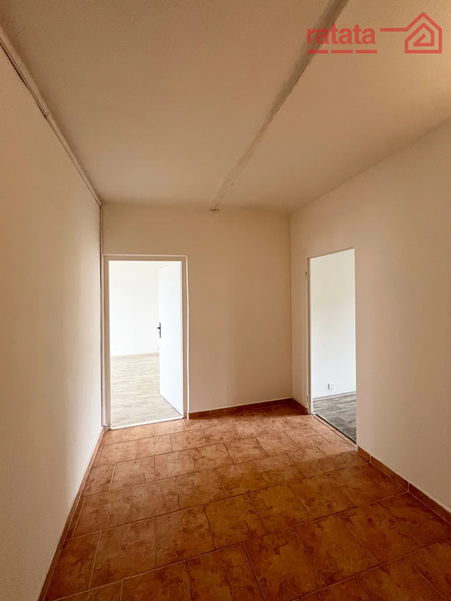 Je zde kuchyňská linka, plynový spořák, vana s umyvadlem a WC. Na podlahách je položeno lino, dlažba a koberce. Byt je volný k nastěhování IHNED.