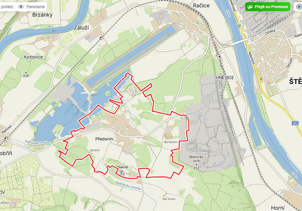 Jedná se o rovinatý pozemek o rozloze 15 382 m² na okraji katastru obce. V této části převažuje rekreační zástavba a nová zástavba rodinných domů. V blízkosti se nachází pískovna a plavební kanál Račice. V územním plánu jsou pozemky vedeny jako plochy občanského vybavení a tělovýchovná a sportovní zařízení.