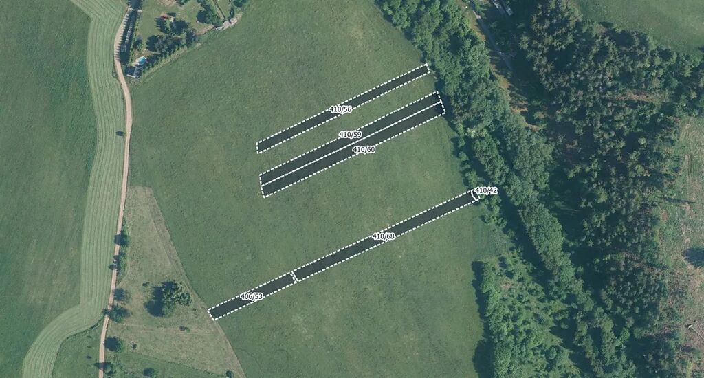 Jejich celková výměra je 9 651 m2 a k prodeji je 4 826 m2. Převážně se jedná o trvalý travní porost o výměře 3 902 m2. Okrajově pak o ornou půdu. Půda je v rámci katastrálního území nadprůměrné kvality.