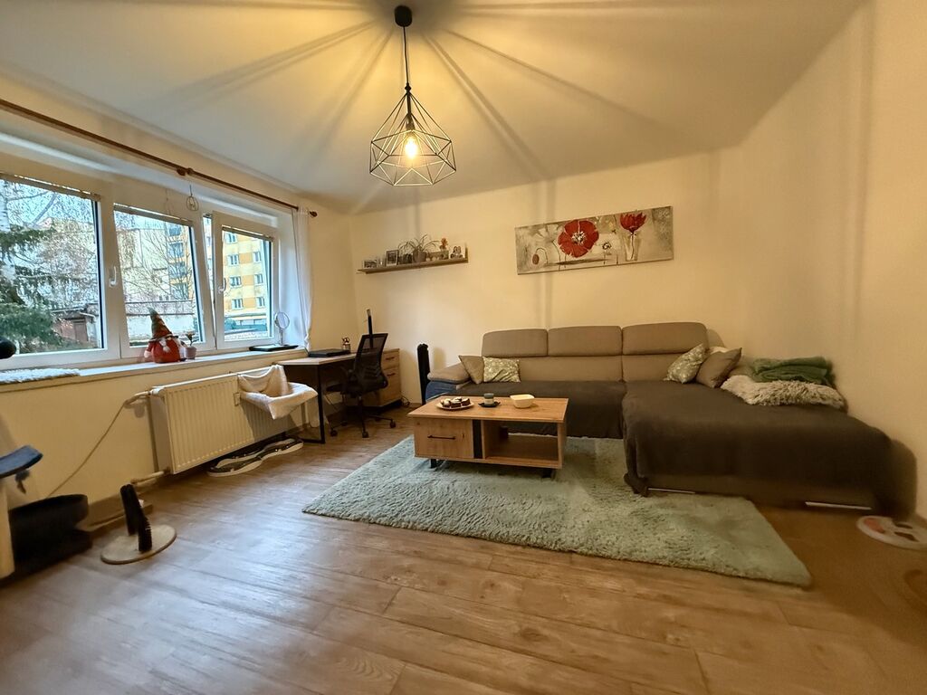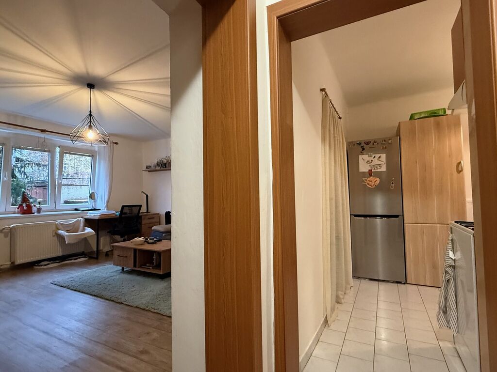 Byt je teplý v klidném domě s možností využití zahrady za domem a parkování na přilehlém parkovišti přes ulici.