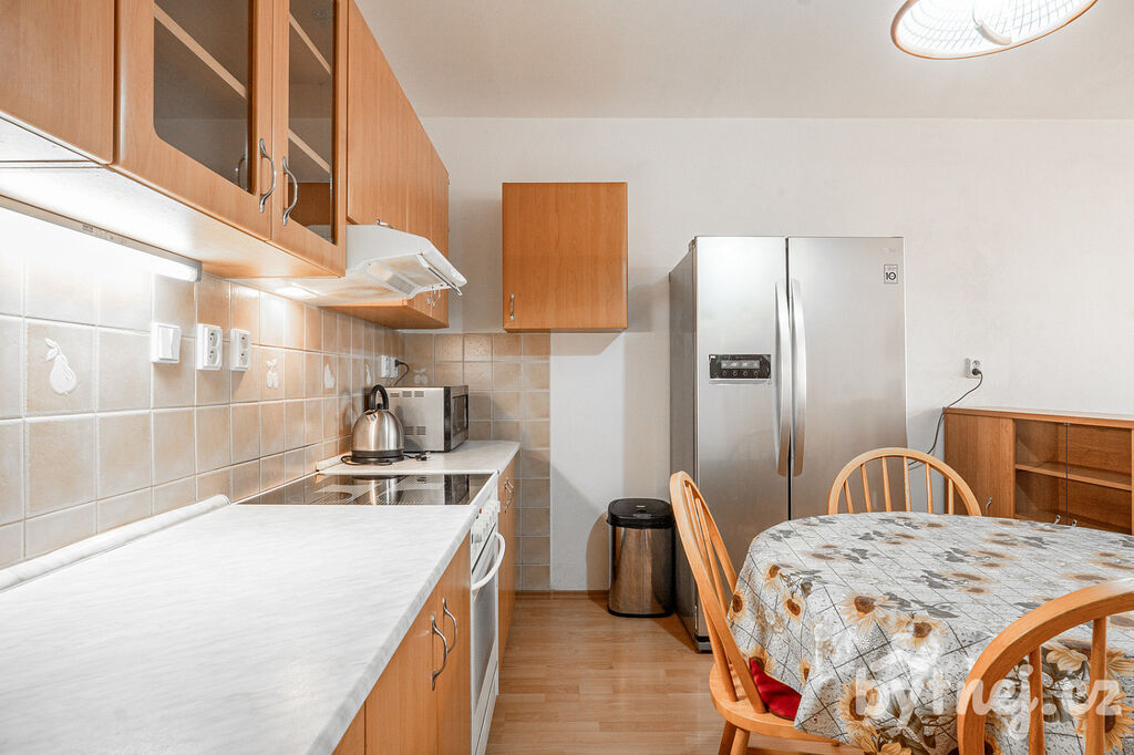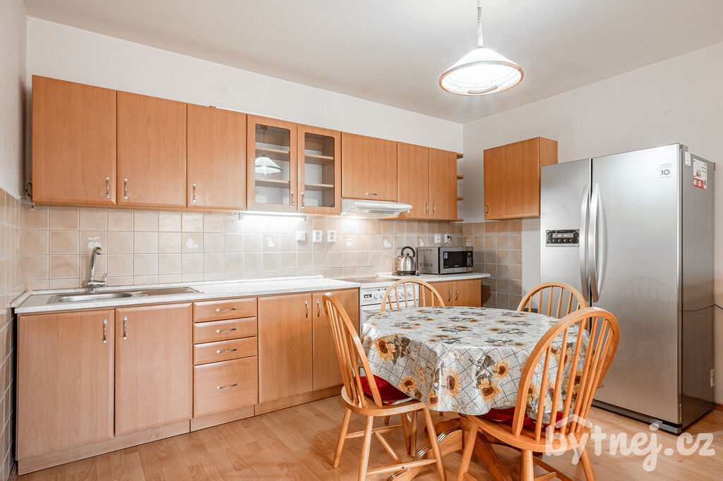 Součástí kuchyňské linky je elektrická trouba s varnou deskou, digestoř, mikrovlnná trouba a lednice s mrazákem. V koupelně pračka se sušičkou, sprcha, otopný žebřík a skříňka nad umyvadlem. Zbytek bytu je vybavený viz foto.