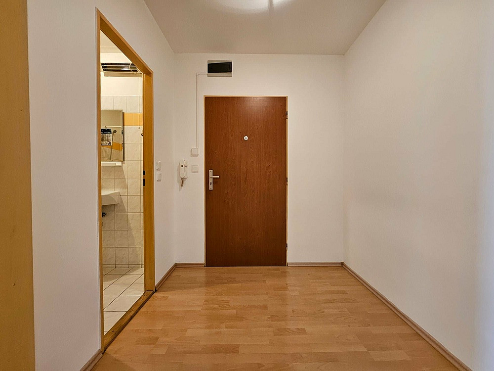 Byt o celkové ploše 24,60 m² se nachází ve 2. patře cihlového domu s výtahem. Nabízí se nezařízený, je zde pouze kuchyňská linka, digestoř.