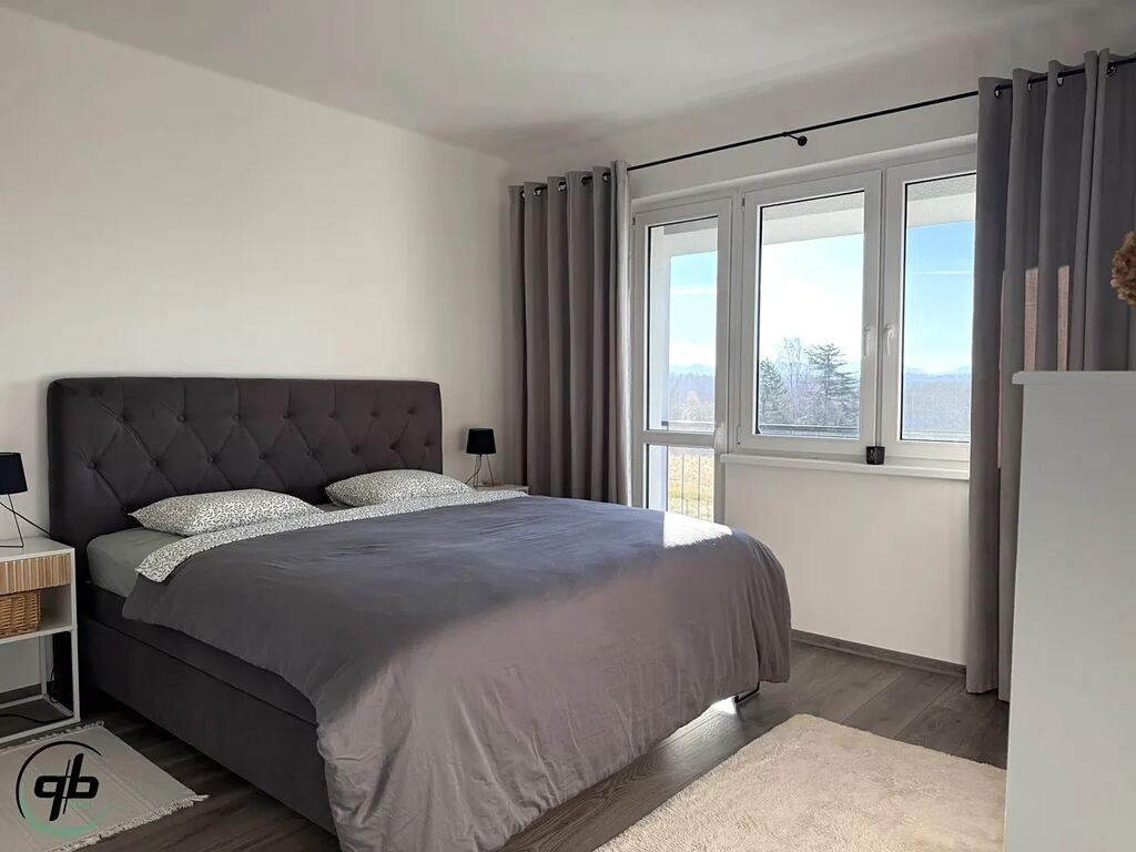 Dominantou obývacího pokoje je krb, který dodává prostoru příjemnou atmosféru, obzvlášť v chladnějších dnech. Podlahové vytápění zase zajišťuje komfort v celém bytě. Z lodžie se otevírá krásný výhled na Lysou horu – pohled, který dokáže zpříjemnit ráno i večer.