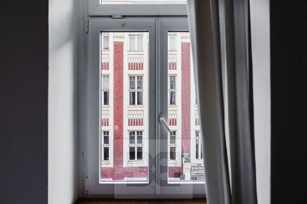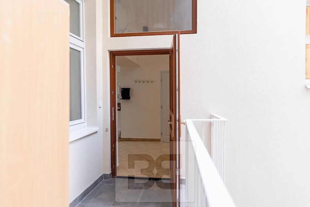 Byt se nachází ve 3. patře cihlového domu s výtahem. Vstup do bytu je přes oddělenou chodbu do vnitrobloku s vlastním malým balkónem.
