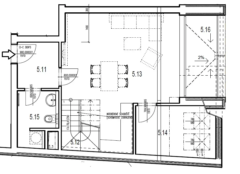 Dispozice bytu zahrnuje vstupní chodbu, tři samostatné pokoje, prostorný obývací pokoj s kuchyňským koutem, dvě koupelny a vnitřní schodiště. K bytu náleží také tři terasy o velikostech 6,12 m², 14,10 m² a 8,40 m², které poskytují příjemný prostor pro relaxaci či posezení na čerstvém vzduchu. Součástí je rovněž samostatný sklep o velikosti 3 m² umístěný v přízemí domu a dvě parkovací stání.