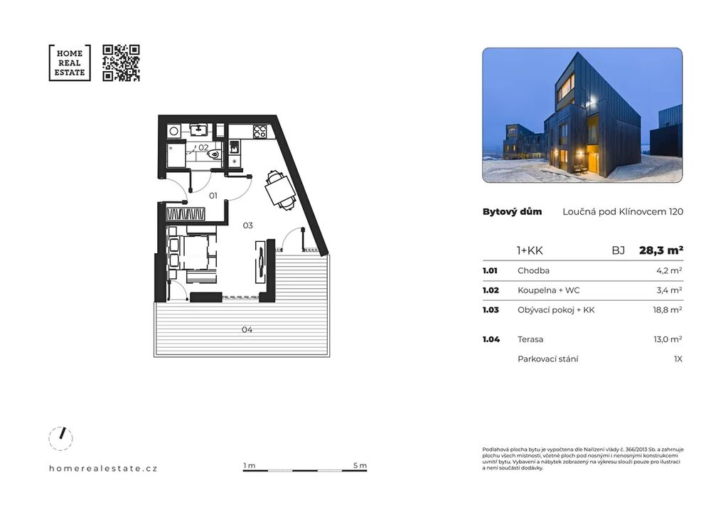 Společnost Home Real Estate nabízí k prodeji nový, plně zařízený byt o dispozici 1+kk s terasou v exkluzivní novostavbě projektu Klínovecké Louky z roku 2022.