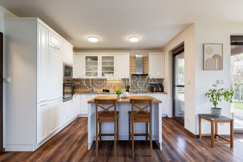 Vyladěnou zateplenou dřevostavbu z dílny renomované společnosti EnerDomy najdete uprostřed zástavby několika domů v klidné ulici Luční a na 120m2 užitné plochy mysleli stávající majitelé opravdu na každý detail.