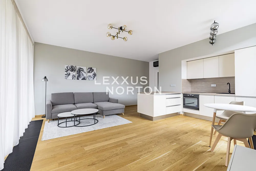 Byt se nabízí kompletně zařízený. V chodbě je k dispozici vestavěná skříň, kuchyň je vybavena sklokeramickou varnou deskou, troubou, lednicí, mrazákem a myčkou nádobí. Koupelna disponuje vanou, toaletou a úložnými skříňkami. Součástí vybavení je také pračka a sušička.