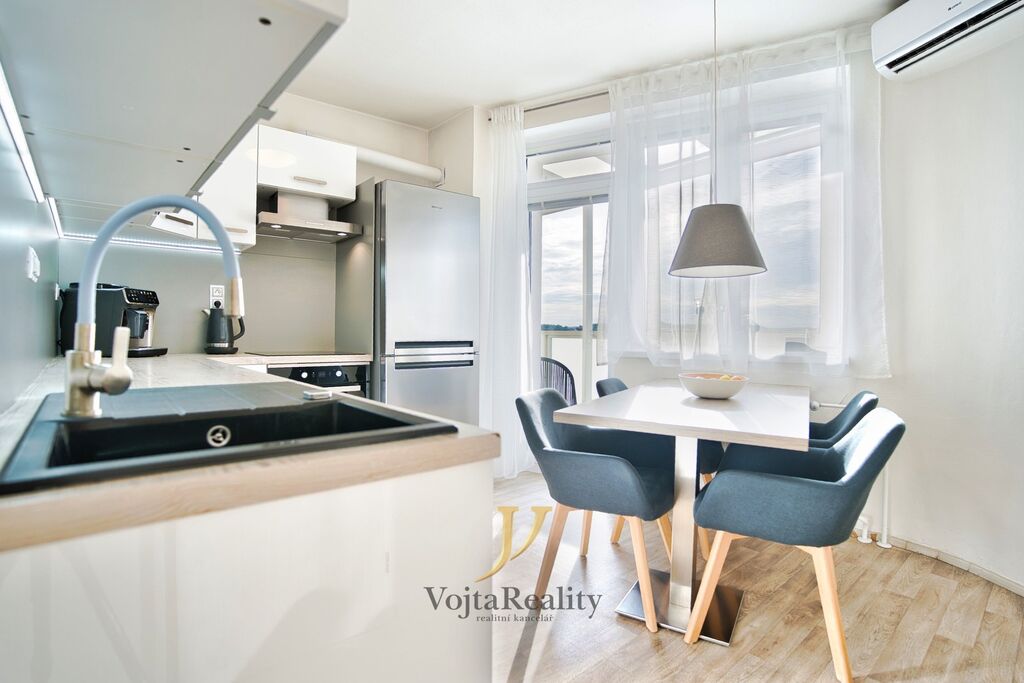 Byt v posledních letech prošel řadou úprav – nová plastová okna s trojskly, interiérové dveře, rozvody vody i odpadu, radiátory, vnější i vnitřní parapety, kuchyňská linka s jídelním stolem a zrekonstruovaná koupelna s toaletou. Balkon byl rovněž zrevitalizován, včetně nového zábradlí a zastřešení mléčným sklem.
