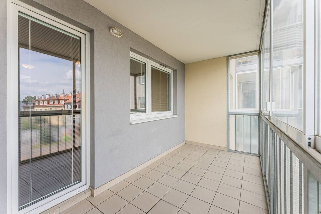 Nabízíme Vám k pronájmu praktický byt 1kk o výměře 34 m² s prostornou zasklenou lodžií (8 m²), v cihlovém bytovém domě v ulici V Dolině, Praha 10 - Michle. Byt je zařízený kuchyňskou linkou se spotřebiči (trouba, sklokeramická deska, myčka, lednice). Koupelna (4 m²) se sprchovým koutem, pračkou, umyvadlem a toaletou. Výhodou je blízká dostupnost MHD, centra města a kompletní síť obchodů a služeb v místě.