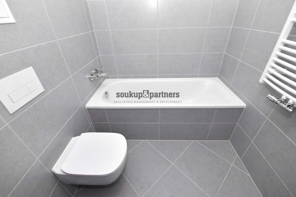 Vše nové - kuchyňská linka včetně vestavěných spotřebičů - myčka, trouba, mikrovlnná trouba, lednice s mrazákem, varná deska, interiérové osvětlení, koupelna s vanou a wc, na podlahách dlažba a vinyl.