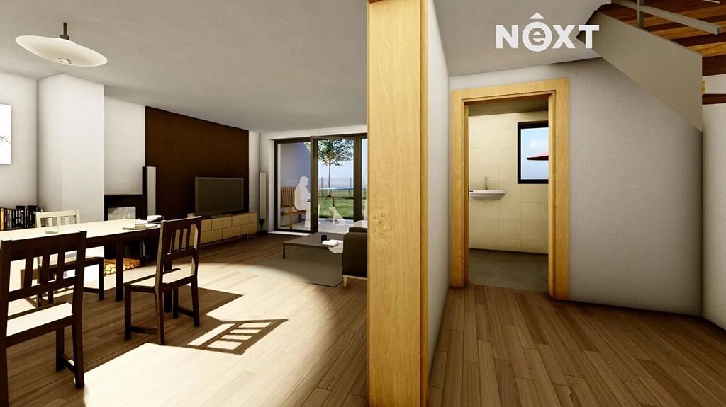 Dispozice domu: 1. NP: Vstupní zádveří navazuje na chodbu se schodištěm, ze které se vstupuje do velkého obývacího pokoje s kuchyňským koutem. Z obytného prostoru je přímý vstup na zastřešenou terasu a zahradu. Z chodby je přístupná garáž, sociální zařízení a také technická místnost s dalším vstupem na terasu.