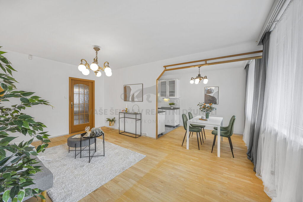 8. Prostorný obývák s balkónem a oddělitelnou jídelnou a kuchyní, která změní dispozici na 3+1