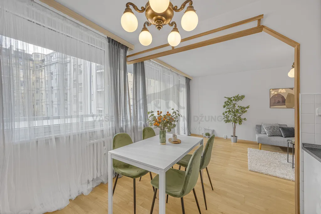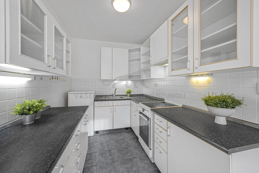 V ceně bytu je vestavěný nábytek, volně stojící nábytek a lustry nejsou zahrnuty v ceně, ale je možné je v případě zájmu odkoupit.