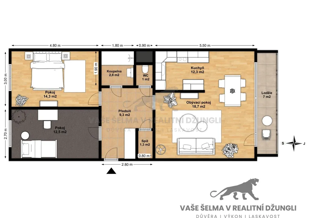 2. Soukromí a klid s lodžií orientovanou do prostorného vnitrobloku a pod okny bez tramvají