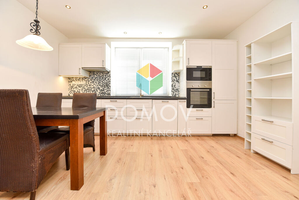 1. NP: Vstupní chodba, světlá kuchyně s oknem a moderní linkou včetně spotřebičů, na kterou navazuje prostorný obývací pokoj. Dále ložnice, komora a koupelna.