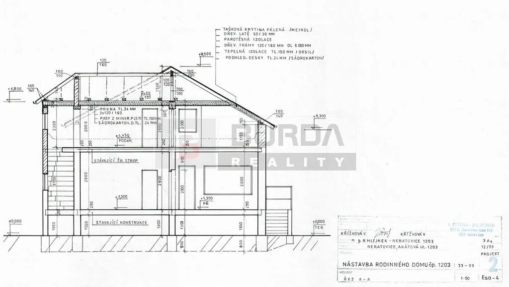 Dům je k celkové rekonstrukci a nabízí možnost přestavby na moderní futuristickou vilu, ale i na klasický dům se sedlovou střechou, s případnou nástavbou dalšího podlaží, s použitím současných materiálů.